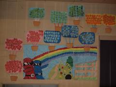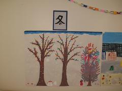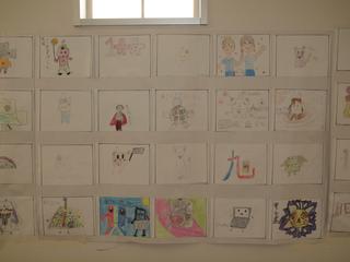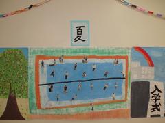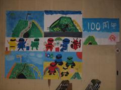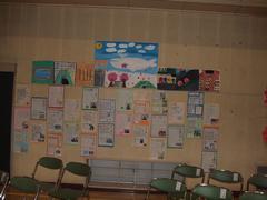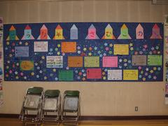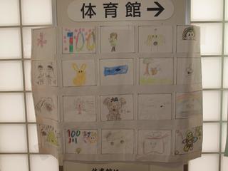 今日は、明日の式典に向けた前日準備。各学年の出し物の練習も最後となりました。教室や廊下には、ご来校くださった皆様を温かく迎え入れるために考えられた、数々の掲示物や展示物が用意されています。エレベーターホールには、過去の木造の校舎が現れました。また、廊下には・・・・