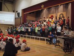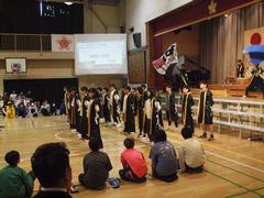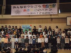どの学年も練習の成果を存分に発揮して、お祝いに駆け付けてくださった来賓の方々に感動していただけるような、出し物を行いました。来賓には、市長・市議会議長・教育長をはじめ、歴代の校長先生方、歴代のPTA 会長の方々、地域の町内会会長、本校元職員などなどが参列しました。