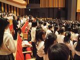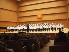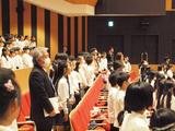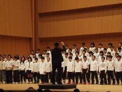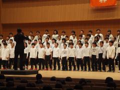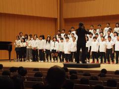 式典でも大好評だった「大切なもの」をカルッツ川崎のステージに立って発表しました。連合音楽会は、隔年で実施している音楽教育研究会の行事です。今年は、区内の小学校10校が参加しました。はじめに♪かわさきの音色♪を参加者全員で大合唱しました。各学校の発表の歌もとても素敵でした。