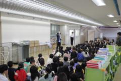 最後は1年生から、「とてもわくわくしました。これからもよろしくお願いします」とお礼の言葉とあいさつがありました。今年度、体育館に初めて全員集合して1年生も本格的に仲間入り。みんなで協力して、令和8年度も、やる気いっぱい、ハッピースマイル宮前小!