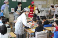 1年生にとっての初めての給食!6年生が準備と片づけを手伝いにきてくれました。運ばれてくる給食をじっと見つめる1年生がかわいかったです。本日の献立は「ツナそぼろごはん・ごもくきんぴら・みそしる・ぎゅうにゅう」でした。 おいしかったね!
