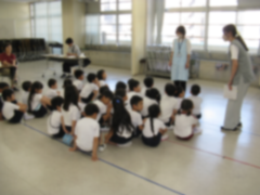 1年生がきちんと列をつくり、教室を移動している場面に出会いました。どこにいくのかな・・・・。スタジオで「発育測定」と「視力検査」を行いました。検査の前に、先生の話に真剣に耳を傾けていた1年生の姿が印象的でした。