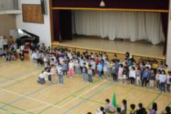 2年生から6年生が下校したあと、体育館で入学式。かわいい1年生をお迎えしました。校長先生の「入学おめでとうございます」の言葉に「ありがとうございます」とこたえる1年生がとても微笑ましかったです。