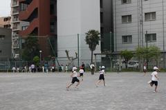 校庭の中央では、3年生が元気よく体を動かしていました。