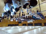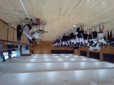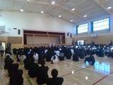 体育館が改修中のため、武道場にて、3年生に向けて行い、1,2年生はライブ配信の形で壮行会を行いました。