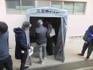 災害用トイレを組み立ててみました。ただし、このトイレは衛生的に課題があるため、川崎市ではマンホールトイレの設置を進めています。早ければ井田中学校にも来年度に設置される予定です。