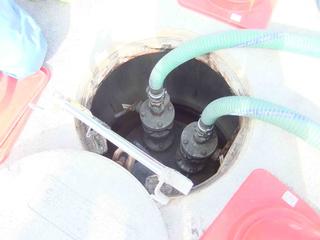 校庭にあるマンホールに給水用のホースをつなぎます。
