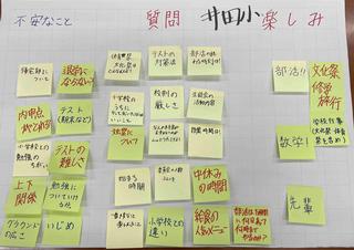 今回出た意見を参考に、井田中学校では生徒会が中心になって、どうしたらみなさんが楽しく中学校生活を送れるか考えていきたいと思います。