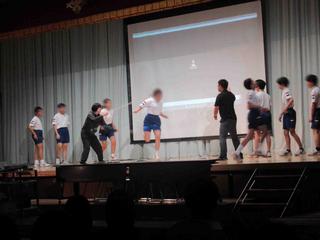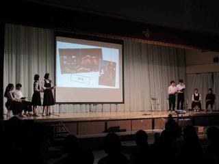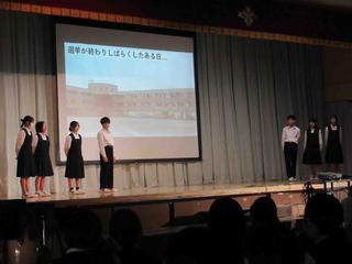 生徒会本部初の劇を披露。生徒会本部の代替わりを面白く演じました。