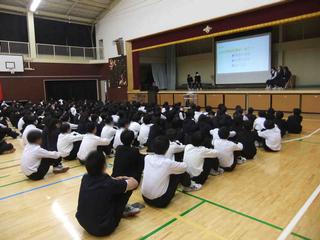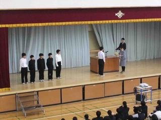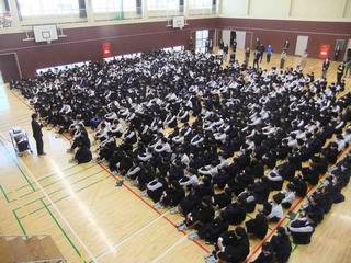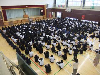 12月23日(火)、今年の授業最終日、体育館で全校集会を開催しました。