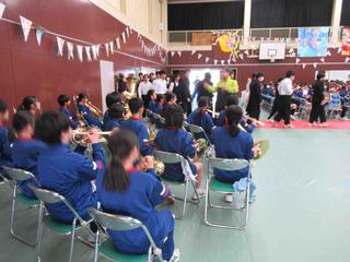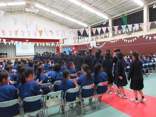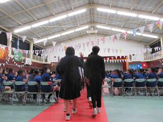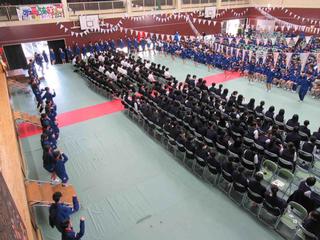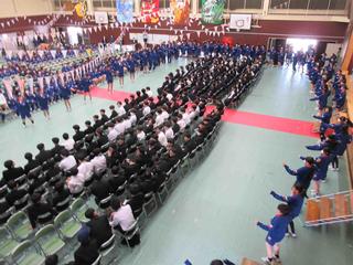 吹奏楽部の演奏と拍手に迎えられ、3年生が入場。