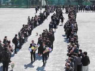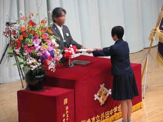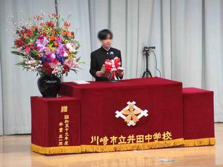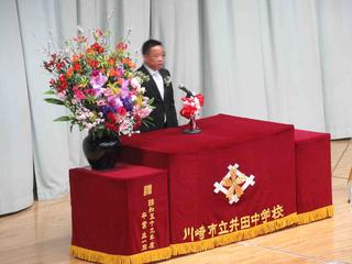 私は3年生が小学校3~4年生の時に井田小学校で勤めていました。そして4年生の時に全クラスで総合的な学習の時間でゲストティーチャーとしてSDGsのお話をさせてもらったことがありました。あれから5年、事務センターの前でチョロチョロしていた子どもたちが、立派に成長している姿を見れてとても嬉しかったです。SDGsのゴール2030年にみなさんは20歳、そしてその先の未来を創っていくのはみなさんです。井田中学校で学んだことを活かして、それぞれの新しい世界で頑張ってください。これからのみなさんのさらなるご活躍を祈念いたします。