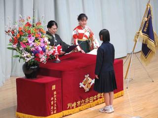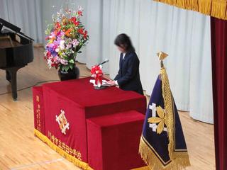 校歌斉唱…今年度から1番~3番まで歌うようにしました。