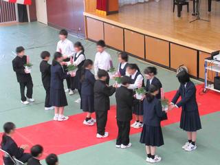 1年生各クラスにルピナスの鉢植えのプレゼント