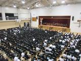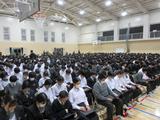 臨港中学校、聾学校との合同入所式。本校の実行委員長が生徒代表の挨拶をしました。
