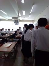 3年生の給食当番は保健室前にクラスごとに並び、給食の食缶や食器を持って2階に上がります。(2年生B棟1階、1年生は個別級前にてそれぞれの場所で同じように準備します。)