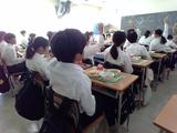 各教室で配膳が終わると「いただきます」をし、おかわりじゃんけんが始まります。そして、毎日美味しく給食をいただきます。