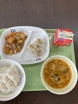 12日(金)豚肉と生揚げの炒め煮、蒸ししゅうまい(3個)卵入りチゲスープ、