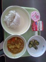 今日の給食は、「じゃこきゅうり、ポークカレー、麦ごはん、牛乳、ピーチゼリー」です。