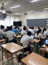 今日は、生徒会役員選挙が行われました。立候補者8人の演説を聞き、今年はクロムブックを用いての投票と