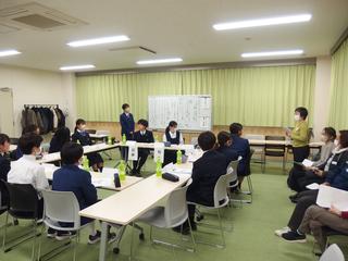 当日は、枡形中学校の代表生徒の他、生田中学校、南生田中学校の代表生徒が参加しました。「住みよい街を目指して~『ありがとう』のあふれる街に~」をてーまに三校の生徒が共にアイデアを出し合い、話し合いを行いました。