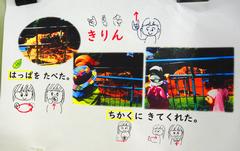 幼稚部では、親子でのやりとりを大切にしながら遠足などの行事を楽しんでいます。そして、学校では事前に行事の話をし、事後に振り返りをしています。また、その時のやりとりや身に付けてほしいことばなどを文字や手話イラストなどで示し、掲示してことばの獲得の手立てになるようにしています。
