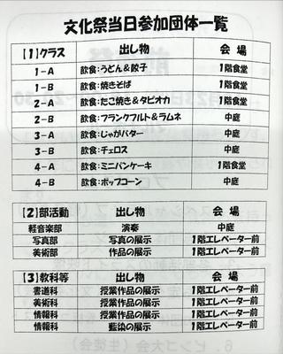 来週は、文化祭があります。そのため時間割も特別授業になります。