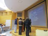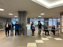 マルチホールでは生徒会役員から本校の日常の様子説明を聞いたり、校舎案内とともに教室の雰囲気を観てもらったりしました。