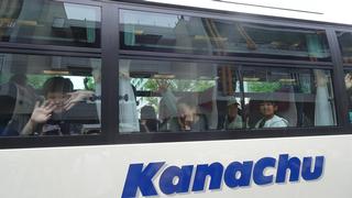 バスに乗り込み元気よく手を降って、おうちの方々とはしばしのお別れです。