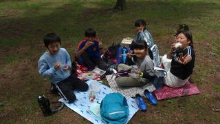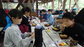 クラスで写真を撮ってから、木々に囲まれてお弁当の時間となりました。