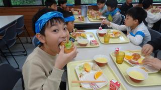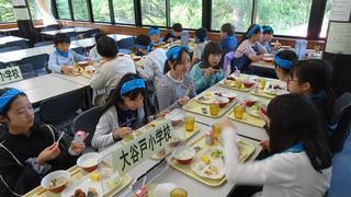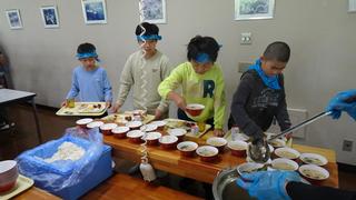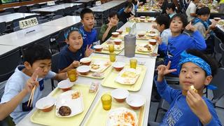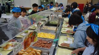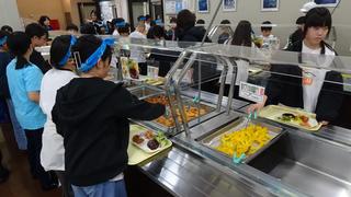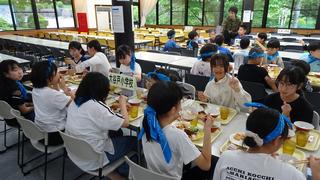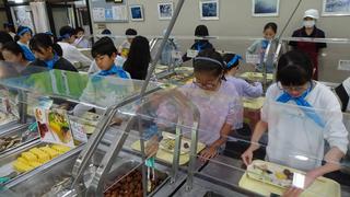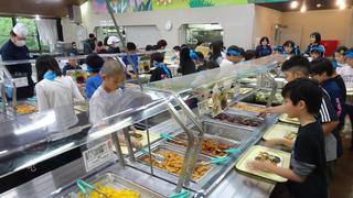 1人ずつ自分で盛り付けをしたら、テーブルごとに「いただきます!」