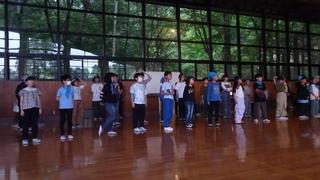 起床後すぐに身支度を整え、自由広場に集合して朝の集いを行いました。