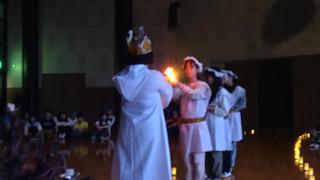 火の神から火の子へと神聖な火が分け与えられ、中央のキャンドルへと灯されました。