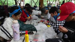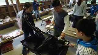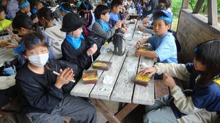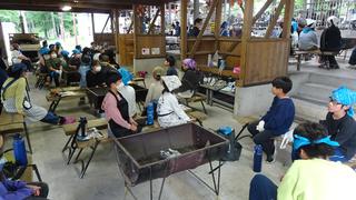 3日間一緒に過ごした聾学校・久末小学校・下布田小学校との退所式を終え、フォレストチップ作りの時間となりました。