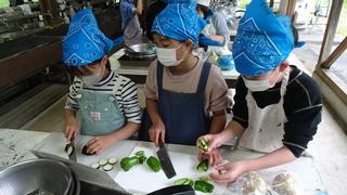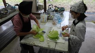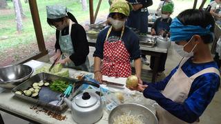 グループで協力して、野菜を切ったり火をおこしたりしていきます。