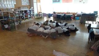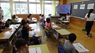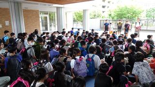 不審者発見の放送が入ると、教室では子どもたちがすぐに退避行動を取りました。