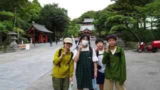 グループで境内や若宮大路の段葛を歩き、観光都市の中心地の雰囲気を味わいました。