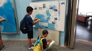 三浦市にある神奈川県水産技術センターでは、地球環境の変化や水産資源の減少などから、漁業を守るために数々の研究や実践が行われていることを解説パネルから学びました。