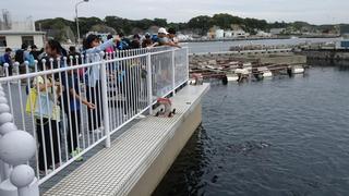 さらに真鯛のプールでは、餌付けの体験もさせていただきました。