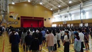校長先生の話では、「言葉には力があります。やさしい言葉、前向きな言葉をあふれさせていきましょう。」と全校に呼びかけられました。