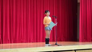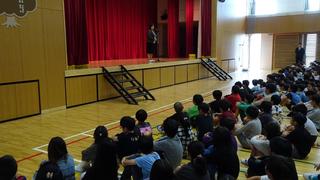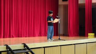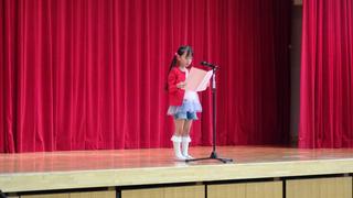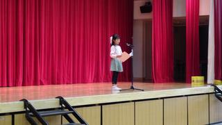 全校を前にしても堂々とスピーチすることができ、とても立派でした。