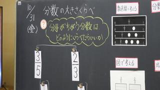 「分数の大きさとたし算、ひき算」で、もとの分数をより簡単な分数にすることや、分母が異なる分数同士の大きさを比べることについて学習しました。