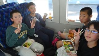 列車の中では疲れを見せることなく元気いっぱいでした。