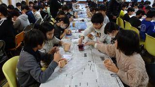 修学旅行の記念となるよう、それぞれ思いを込めて湯呑みに絵柄を入れていました。