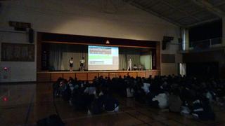 生徒会による学校紹介では、劇や動画、クイズを通して中学校の1年間を知ることができました。