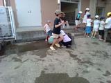 水鉄砲も、ケチャップやマヨネーズの空き容器・ペットボトルなどの手作りです。何度も何度も水鉄砲に水を注ぎ、的が水で柔らかくなってしまうほど、長い時間楽しみました。