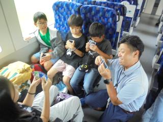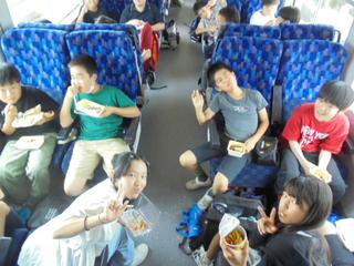 お弁当・おやつタイムです。やはり、この時間を一番楽しみにしていたようです。子供たちのテンションも最高潮!お弁当のあとはおやつタイム。まさに楽しみが続く至福のひとときです。早々に食べ終えた子からは、「お弁当食べたら、なんもやることねー」との声も聞こえてきました。(いやいや、これからまだまだ楽しいことがたくさん待っていますよ!)お弁当の準備ありがとうございました。只今、宇都宮です。あと30分で日光到着です。
