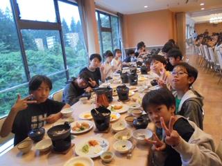 おはようございます。修学旅行2日目の朝がやってきました。ぐっすり眠れた子、「◯バナ」に花が咲きちょっぴり寝不足な子、子供たちの様子は様々ですがみんな元気に朝を迎えました。宿の頭上には青空と白い雲、今日もワクワクする一日が始まりそうです。子供たちの部屋に入ると(男子のみですが)みんなで布団を片付けたり、部屋のゴミを拾ったりと協力し合っていました。驚いたのは、スリッパを「ピシッ」ときれいに揃えていることです。毎日の習慣がこういう場面であらわれます。素晴らしい!!朝食は、焼き鮭、手作り豆腐、肉じゃが、そして栃木産のコシヒカリ。地元の美味しい食材で元気をチャージしました。これから輪王寺と東照宮へ向かいます。歩いて向かう道も楽しみながら、世界遺産の素晴らしさを感じてきたいと思います。それでは、行ってきます!
