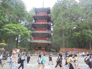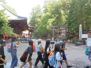 今日は日光東照宮、輪王寺、鳴龍、眠り猫などをめぐるグループ活動がメインでした。子供たちは、鳴龍の不思議な響きに驚いたり、眠り猫の想像以上の小ささに目を見張ったりとたくさんの“本物にふれる体験”ができたようです。歴史や文化を肌で感じる貴重な時間になったことと思います。待ちに待った昼食のカツカレーはボリュームがありとても美味しかったです。2度目の買い物も存分に楽しんでいました。