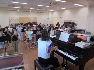 現在2年生は生活科の学習で野菜の栽培に取り組んでいます。トマトやピーマン、ナスなどを一人ひとりが毎日水やりをしながら愛情を込めて育てています。そんな子供たちの様子を見て、音楽専科の職員が素敵な歌「おやさい賛歌」を作ってくれました。音楽室からは、元気いっぱいの歌声が聞こえてきます。